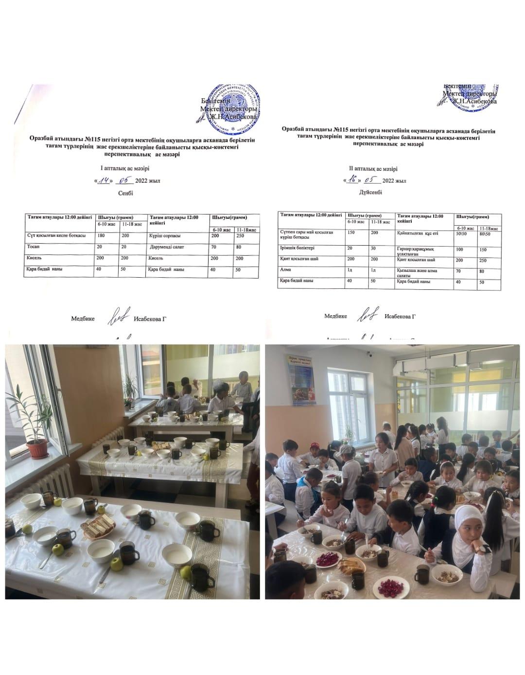 Мектеп оқушыларына арналаған мамыр айының ас мәзірі » «№115 Оразбай атындағы негізгі орта мектебі» КММ