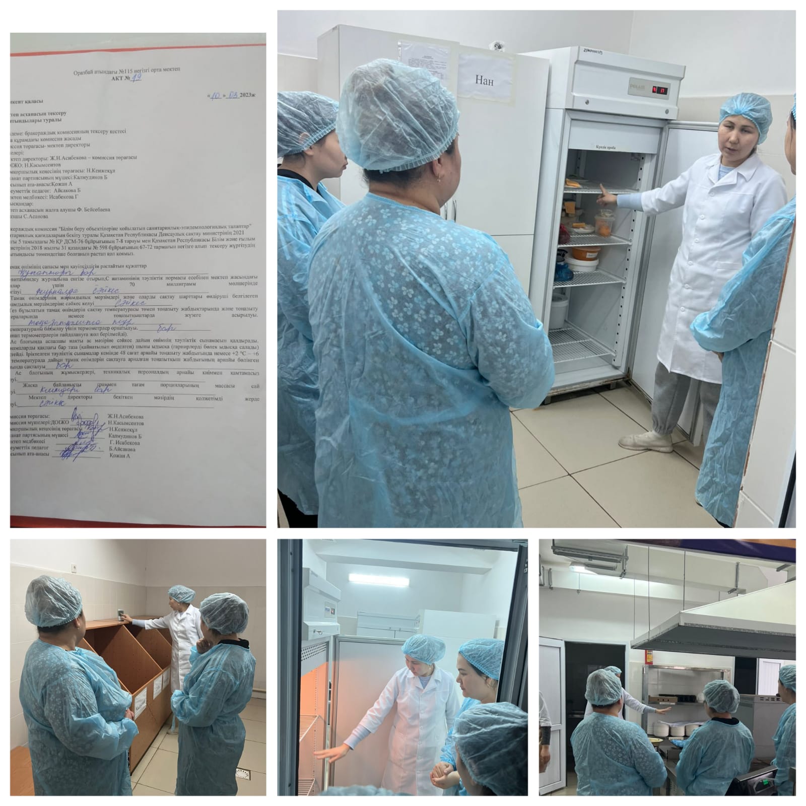 Оразбай атындағы №115 негізгі орта мектебінде Қазақстан Республикасы Білім және ғылым министрлігінің 2018 жылғы 31 қазандағы №598 бұйрығының 3-параграфы 69-тармағына сәйкес тамақтану сапасын мерзімдік бағалауды ұйымдастыруда мектеп бракераж комиссиясы құрамы міндеттері бойынша мектеп асханасының хал- ақуалын, санитариялық жағдайын, шикі заттардың тағамдық, сәйкестендіру сертификаттарының бар болуын және дайын тағамның сапасымен мөлшерін бақылап тексеруден өткізіп тұрады.